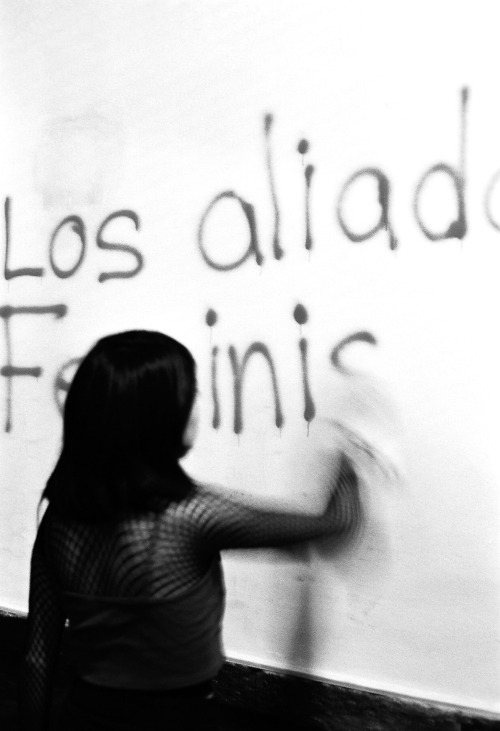Al entrar al recinto y participar del círculo que formaban unas 60 mujeres que contaban su historia de violencia machista, la primera que escuchó fue la de una joven cuyo novio le había provocado un aborto a punta de patadas. Al terminar el relato la mujer pintó en una pared la frase: “Los aliados feministas no existen”. “Mi” de inmediato, tomó su primera fotografía.