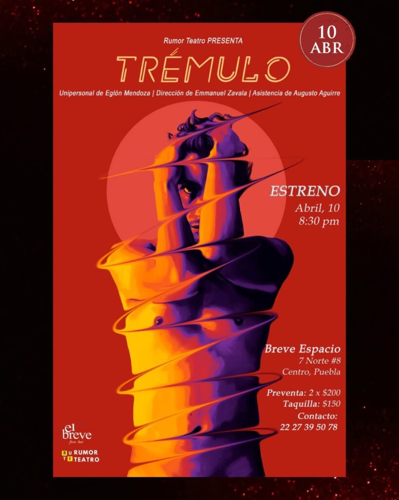 “Trémulo” es el nombre de la nueva obra creada por el actor y dramaturgo poblano, Eglón Mendoza, que aborda la experiencia de un hombre homosexual diagnosticado con VIH, la cual tendrá su estreno a la audiencia general el próximo 10 de abril.