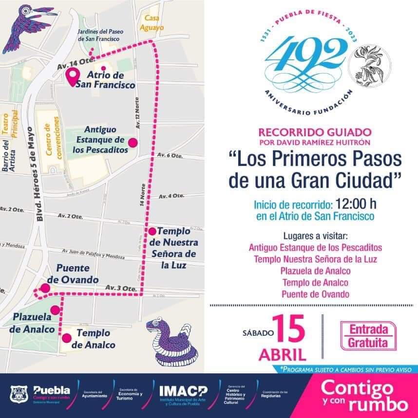 Para iniciar el domingo 16 habrá una rodada por los lugares más emblemáticos de Puebla en el Bicitour: ‘Tras los Pasos de la Fundación’, la cita es a las 10:00 de la mañana en el Centro Histórico. Y como ya es tradición a las 12:00 se disfruta de las melodías de la Banda Sinfónica Municipal.